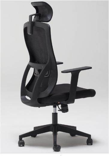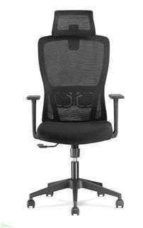 Poltrona operativa con seduta imbottita colore nero, schienale e poggiatesta in rete colore nero, base a 5 razze in nylon nero, supporto lombare, braccioli fissi a T € 163,00 + IVA