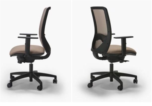 Poltrona operativa con seduta imbottita e schienale in rete, base a 5 razze in nylon nero, supporto lombare, braccioli regolabili. Certificazione catas classe 3 € 139,00 + IVA