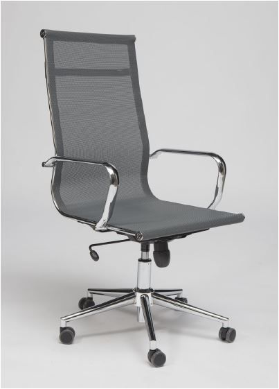 Poltrona direzionale, con sedile e schienale in rete traspirante di colore grigia, braccioli e base in acciaio cromato € 180,00 + IVA